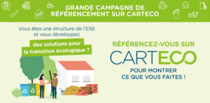 Vous êtes une structure de l’économie sociale et solidaire œuvrant dans des secteurs variés tels que la gestion des ressources et déchets, l’agriculture et l’alimentation, le bâtiment, la mobilité, l’éducation et la protection de la nature, le numérique ou encore l’accompagnement à la transformation écologique ? Référencez-vous sur Carteco !