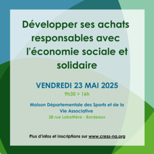Dans le cadre de la Semaine des Achats Socialement et Écologiquement Responsables, le consortium PRASER (CRESS Nouvelle-Aquitaine, INAE et 3AR) organise une journée dédiée aux achats responsables et à l’Économie Sociale et Solidaire.